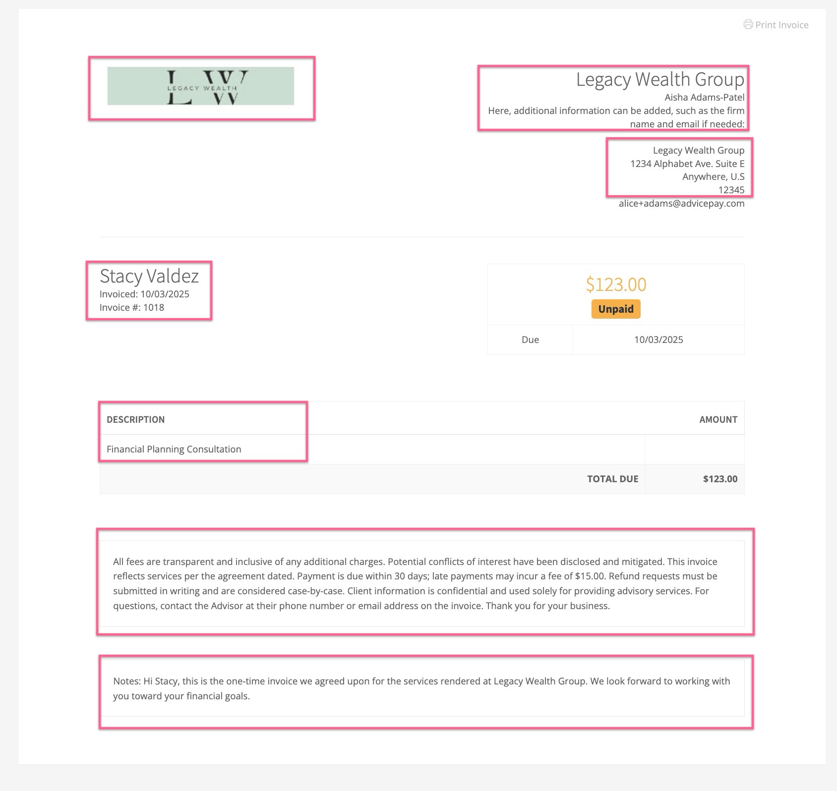 With AdvicePay invoices, you’re able to: