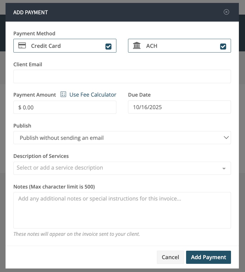 Please note that the Client Email must match a client you have already added to your AdvicePay account!