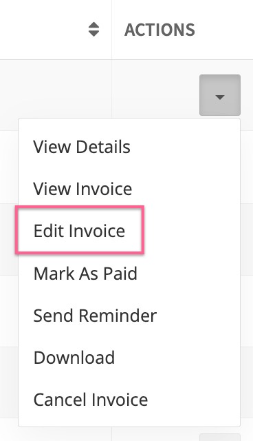- Locate the invoice, then click Edit Invoice in the drop-down arrow: